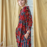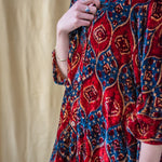 Crafted from 100% handwoven Mashru Silk featuring natural plant-based pigments and traditional Ajrakh block printing by Suffiyan Khatri.