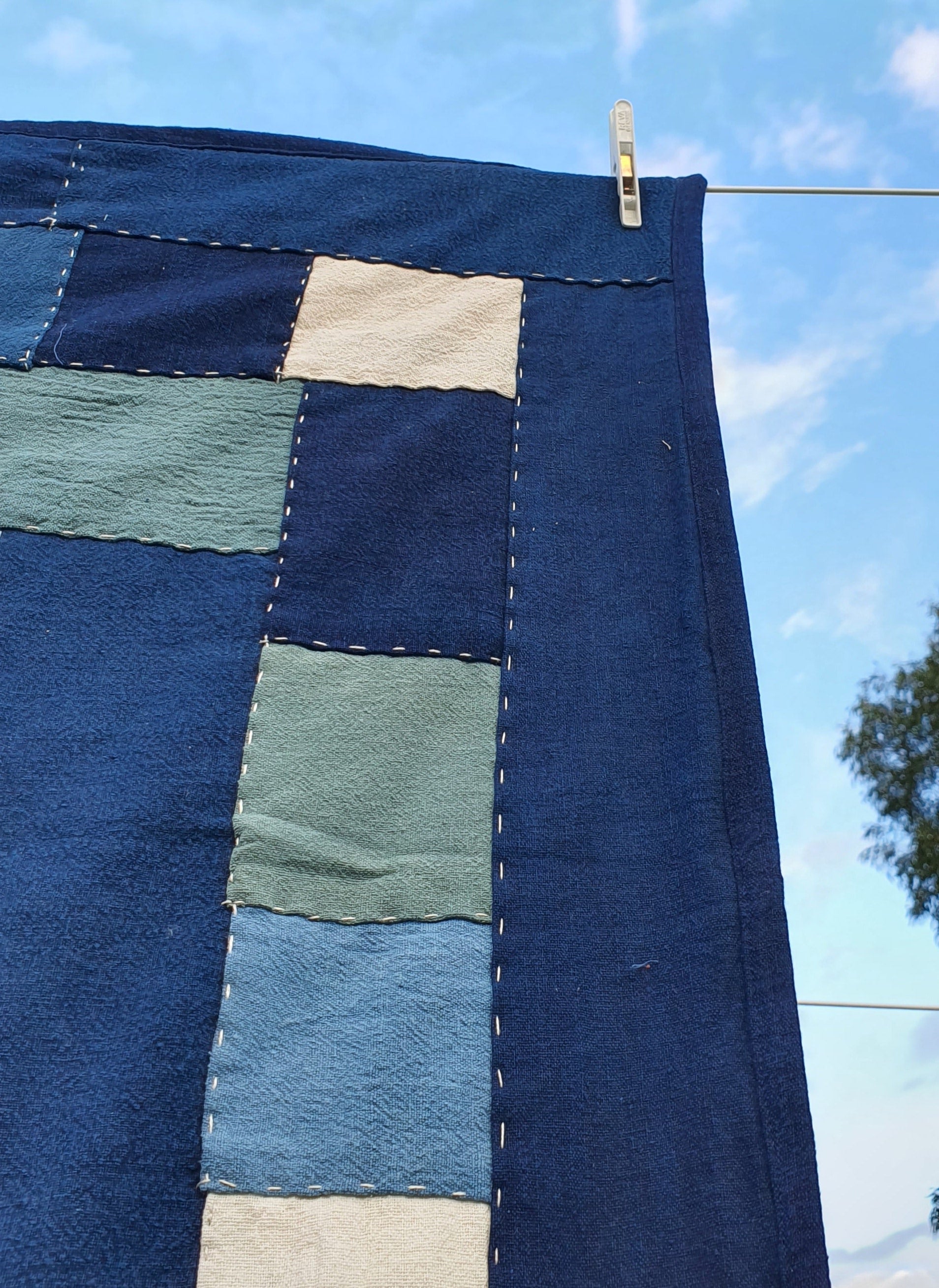 Crafted using a combination of unbleached and offcut Khadi pieces naturally dyed using indigo and indigo + myrobalan.