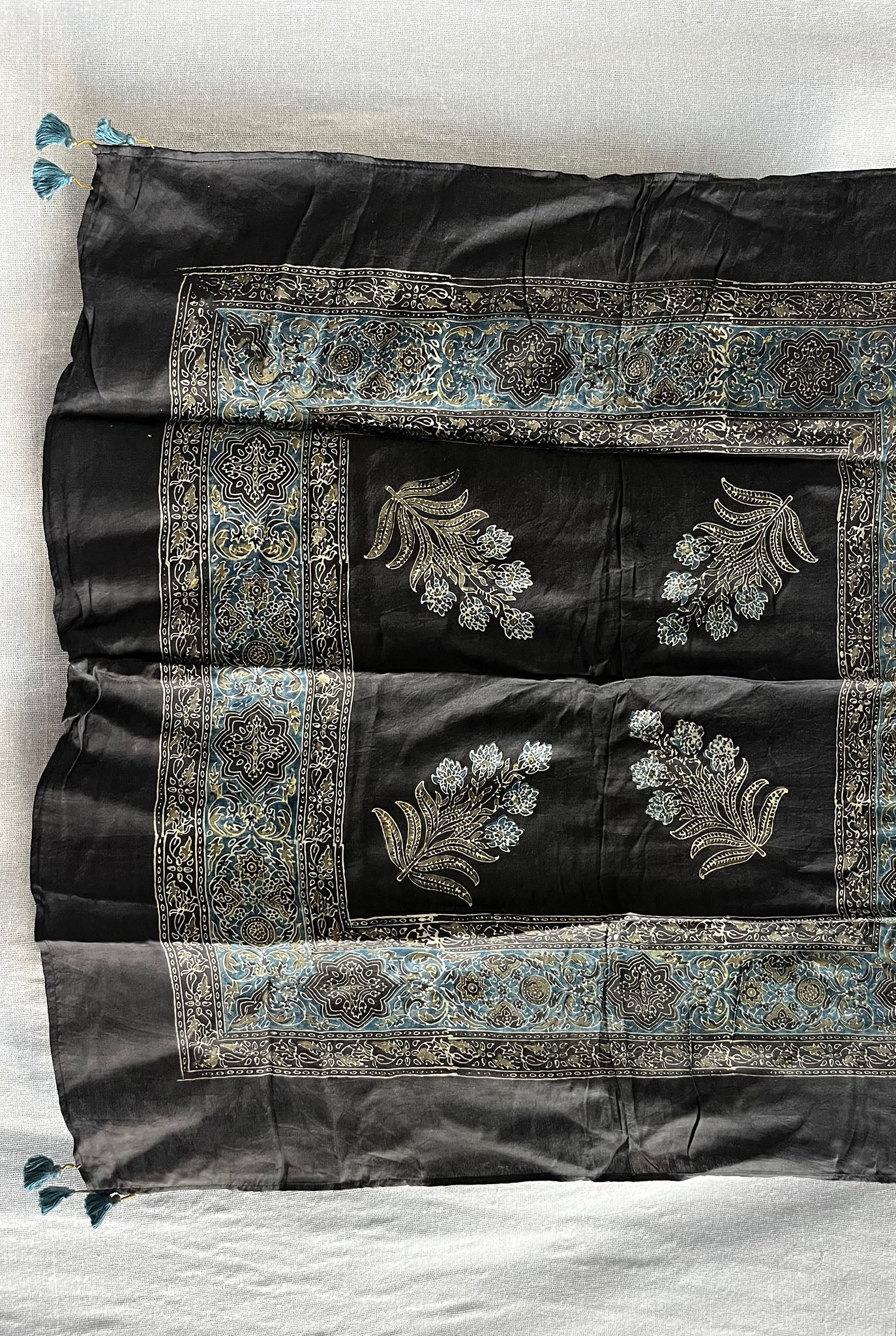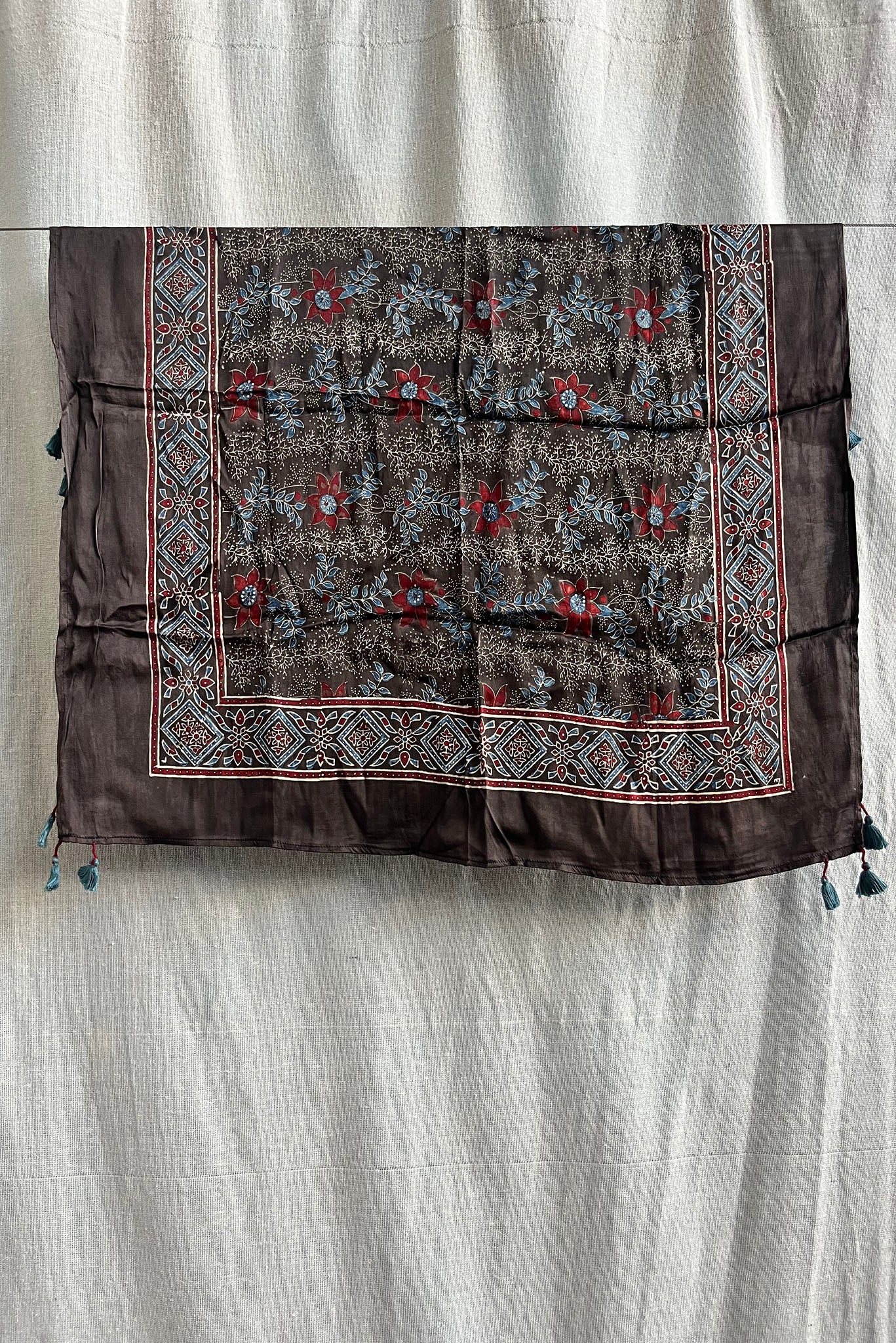 Whether draped around the neck or worn as a statement piece, the Ajrakh accessory allows you to embrace the timeless elegance of one of India’s most cherished textile arts.