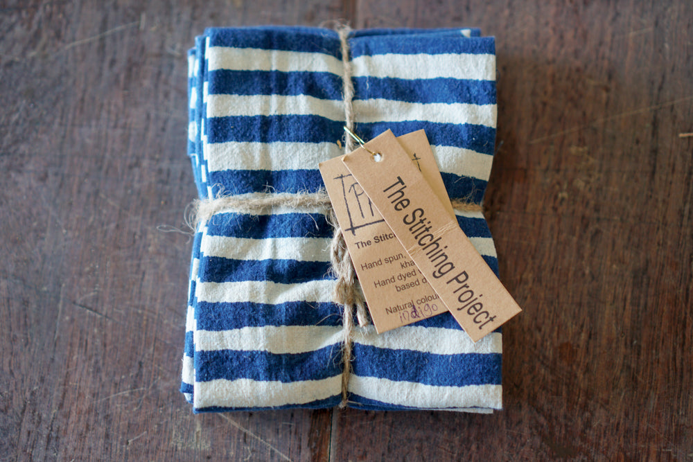 Our process starts with designs being hand carved onto wooden blocks. Then Pawan, our block printer at The Stitching Project places each block onto the ink board. This process is repeated a hundred times over with amazing precision and experience to create the perfect patterns.