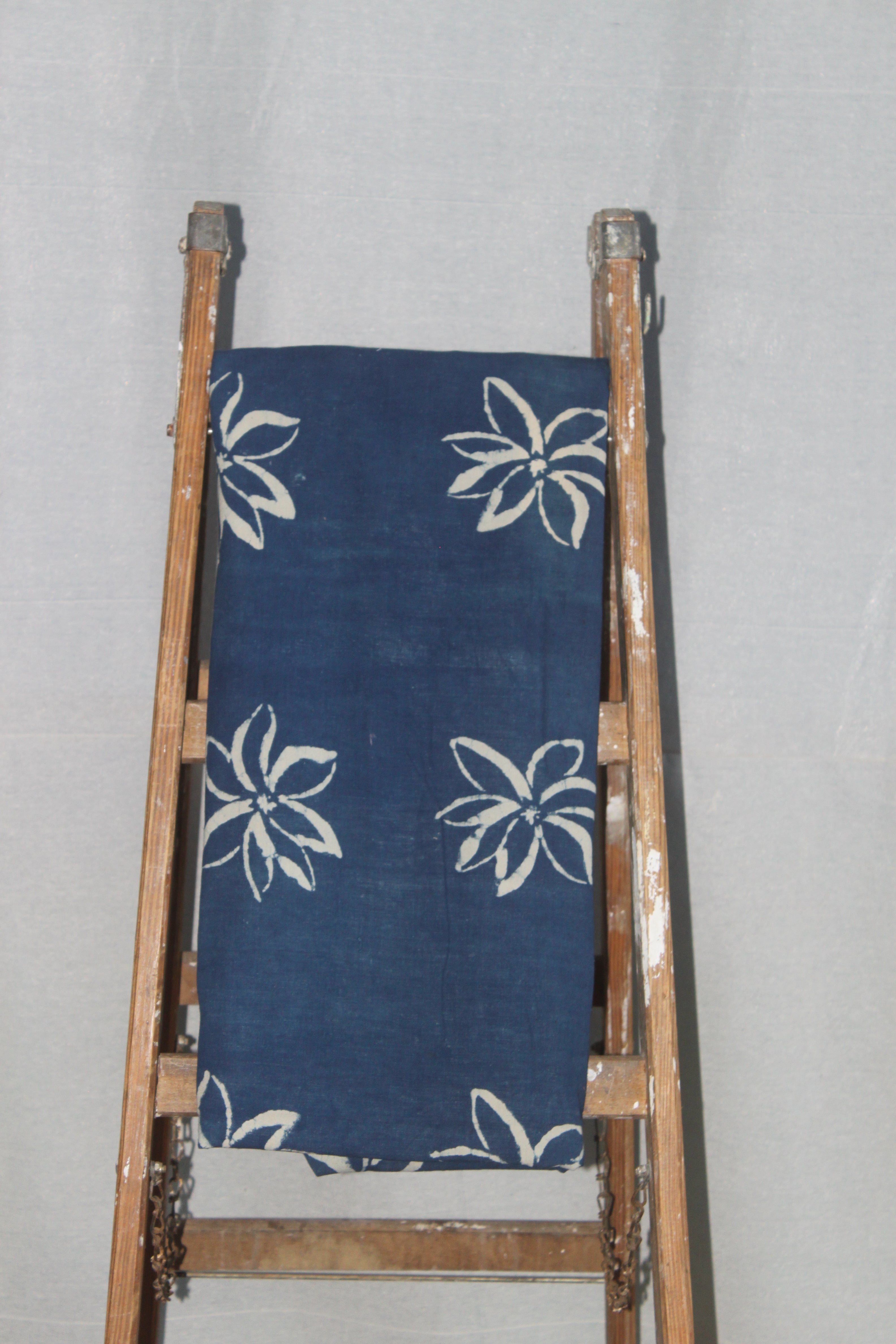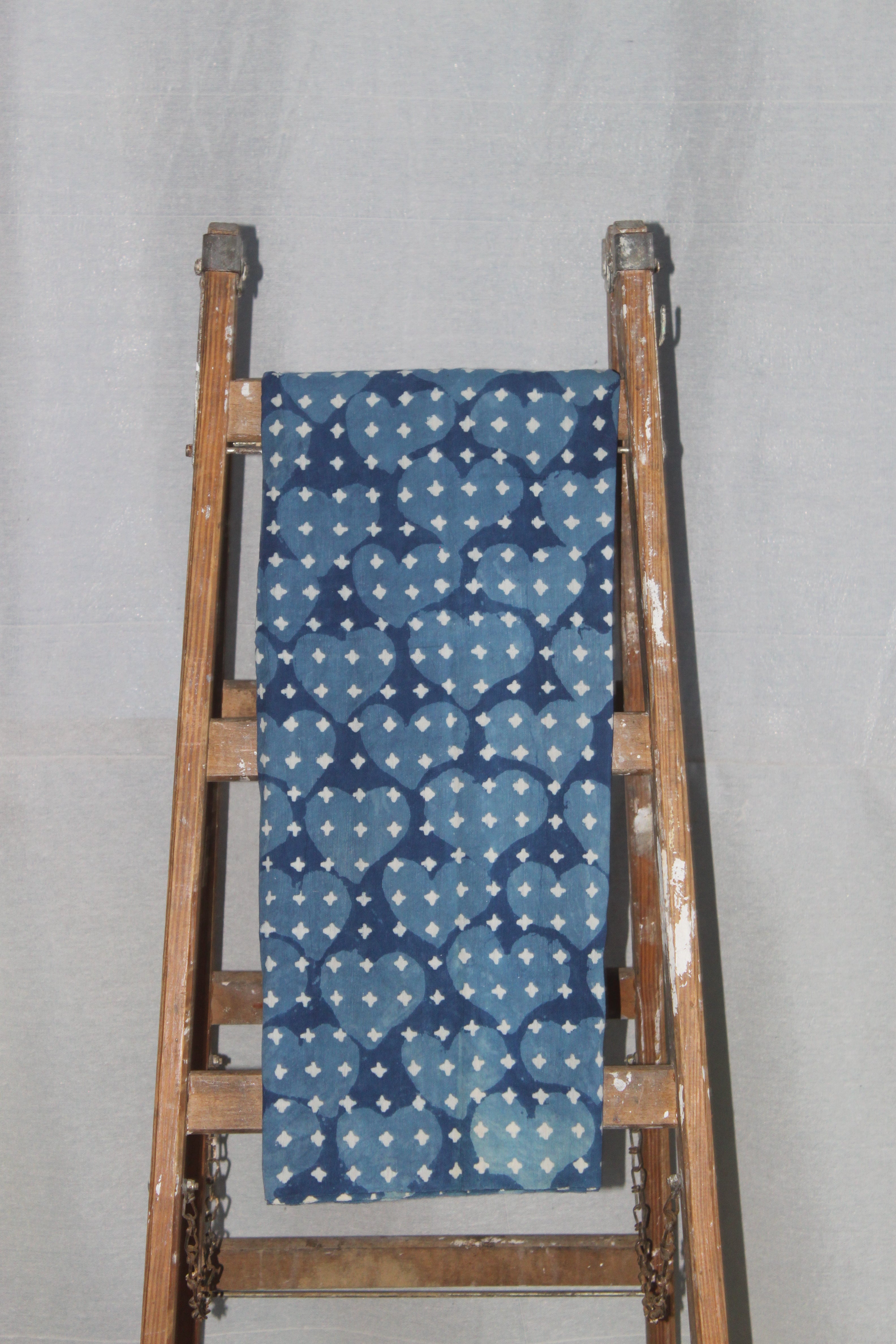 Handdyed in Indigo, this textile first came unbleached and has undergone a few washing processes by both the weavers as well as our partner, The Stitching Project, before mud resist technique is applied.