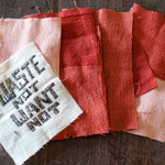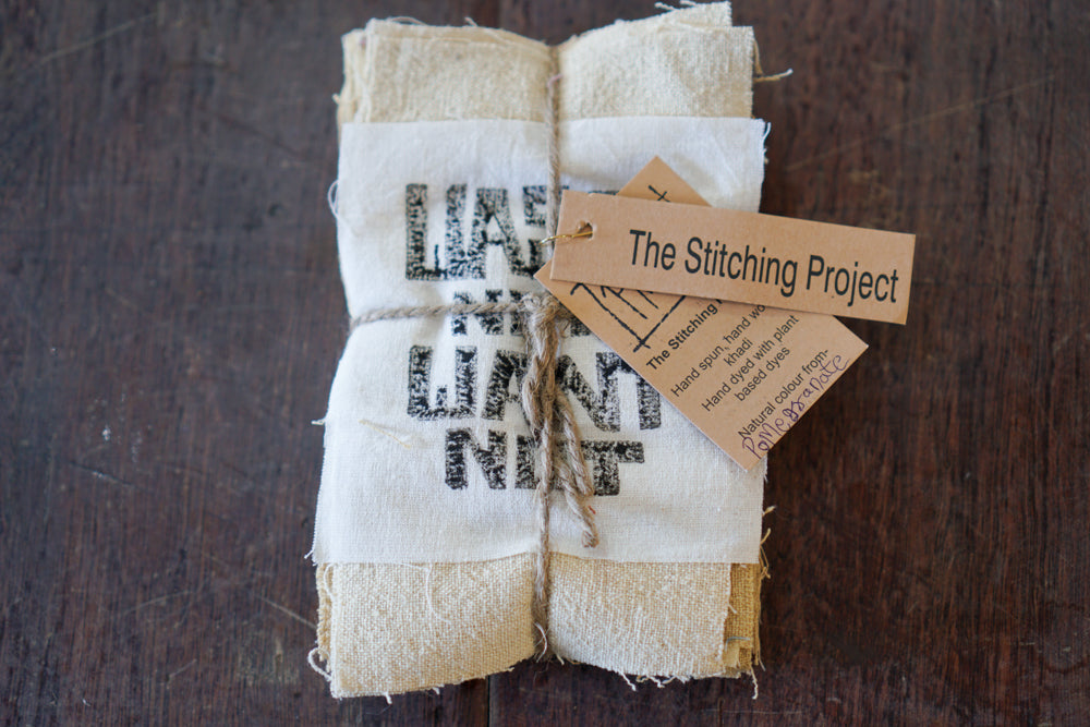The Plant Dye Patches Kit consists of Khadi cotton. It is handspun, handwoven cloth made in Rural India with a distinct character of textured and unique handmade feel. Each kit includes an assortment of unbleached, naturally dyed and block printed pieces.