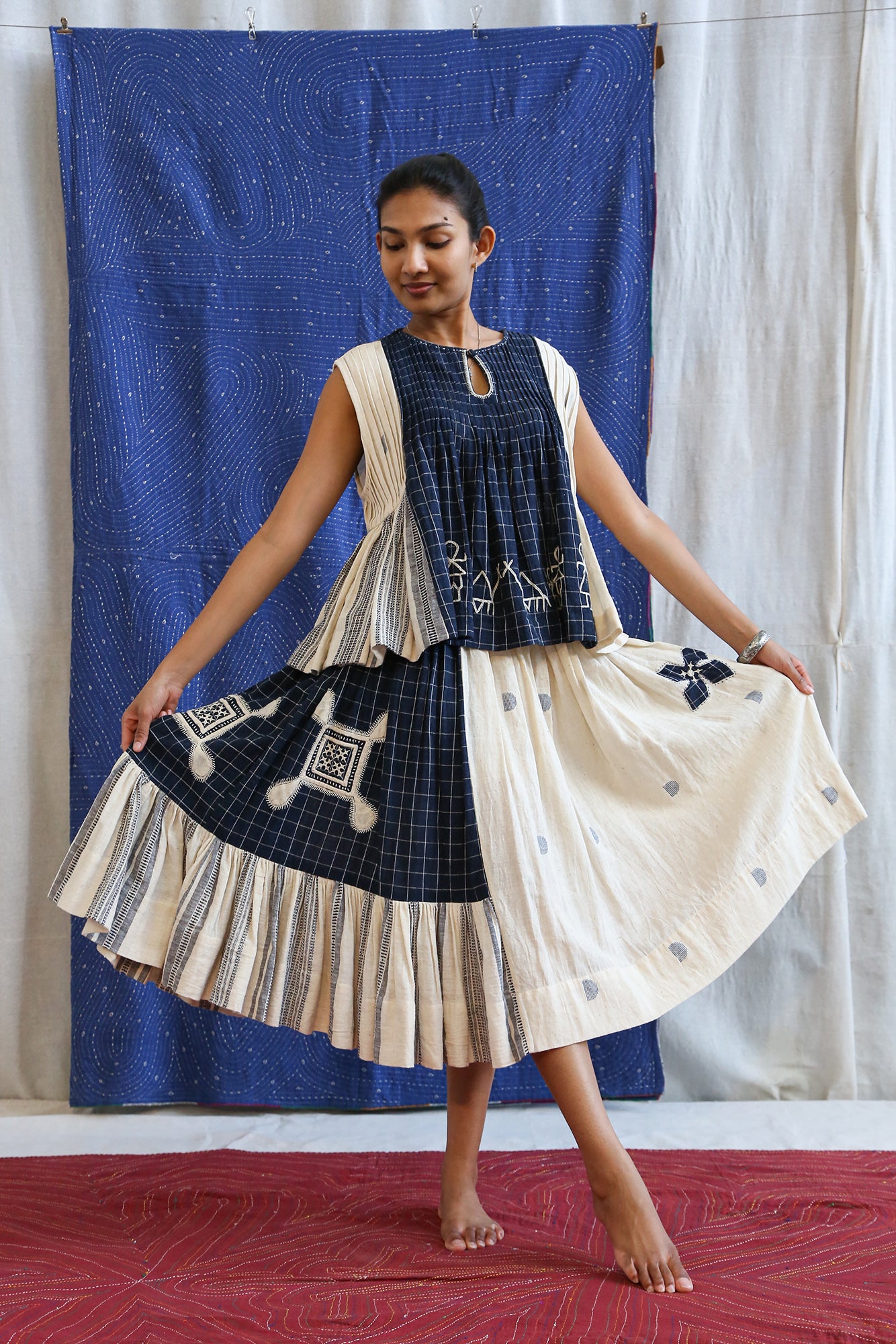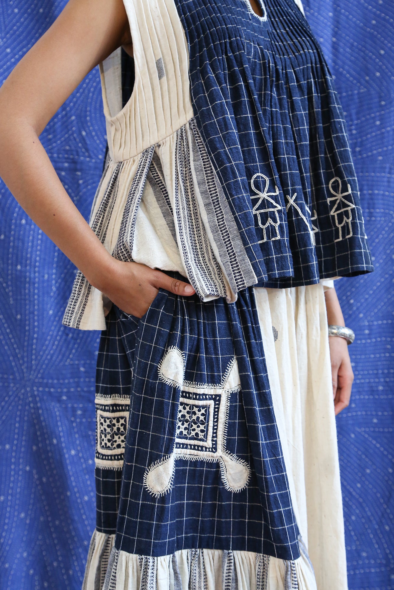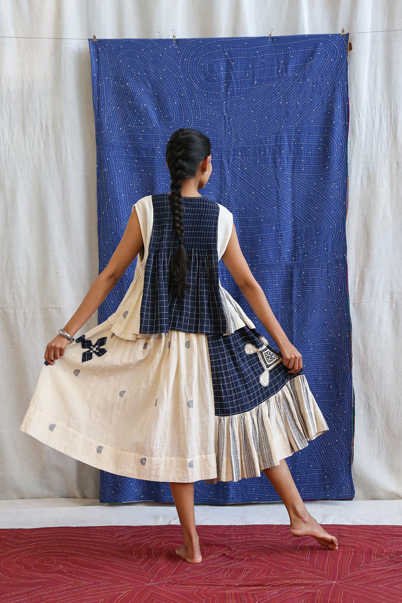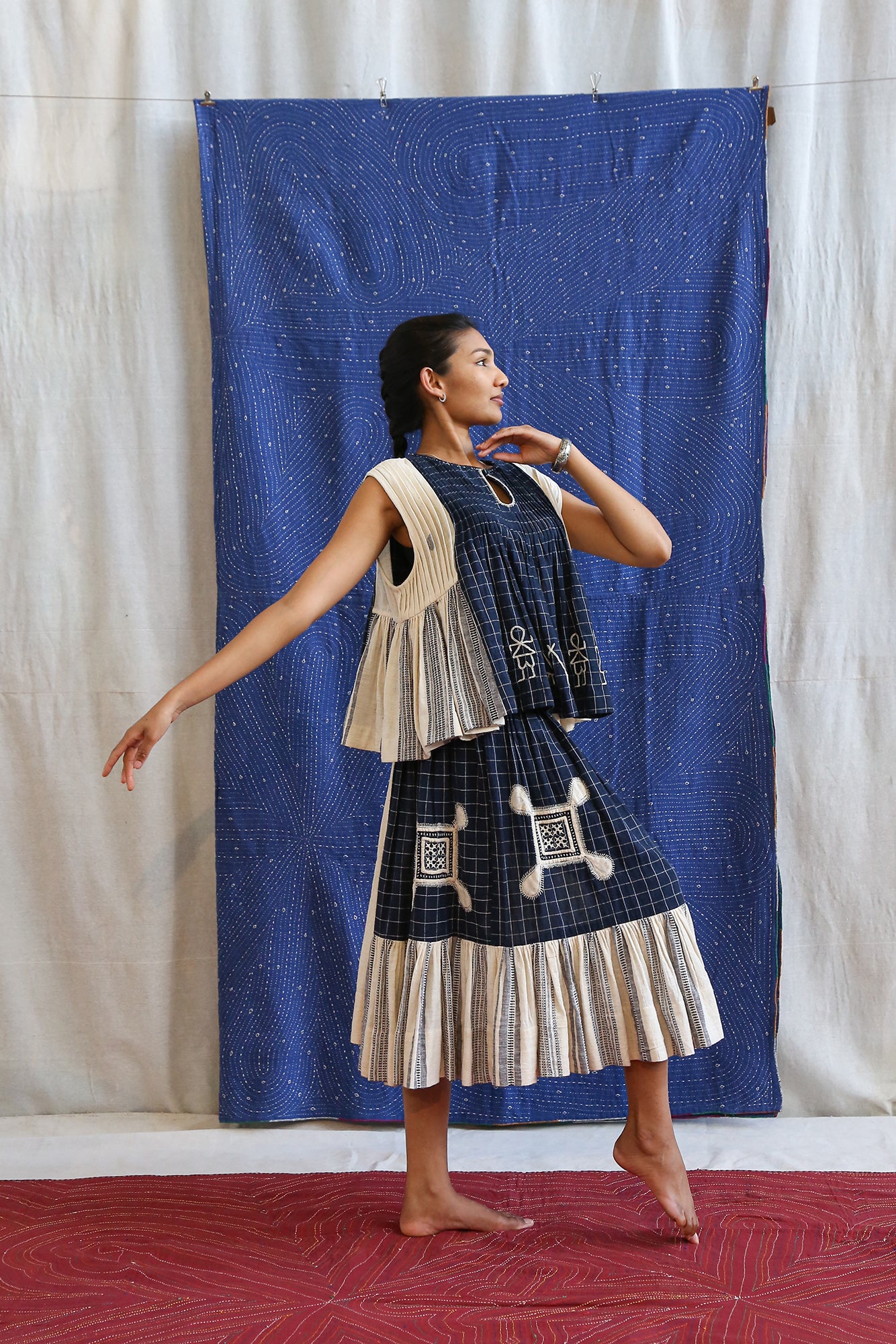 A versatile, handcrafted skirt that blends heritage-inspired detailing with modern wearability. The panelled design, side gatherings, and drawstring closure offer comfort and movement, enhanced by artisanal embroidery.