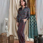 Crafted from 100% soft modal-silk blend featuring natural plant-based pigments and traditional Ajrakh block printing by Suffiyan Khatri.