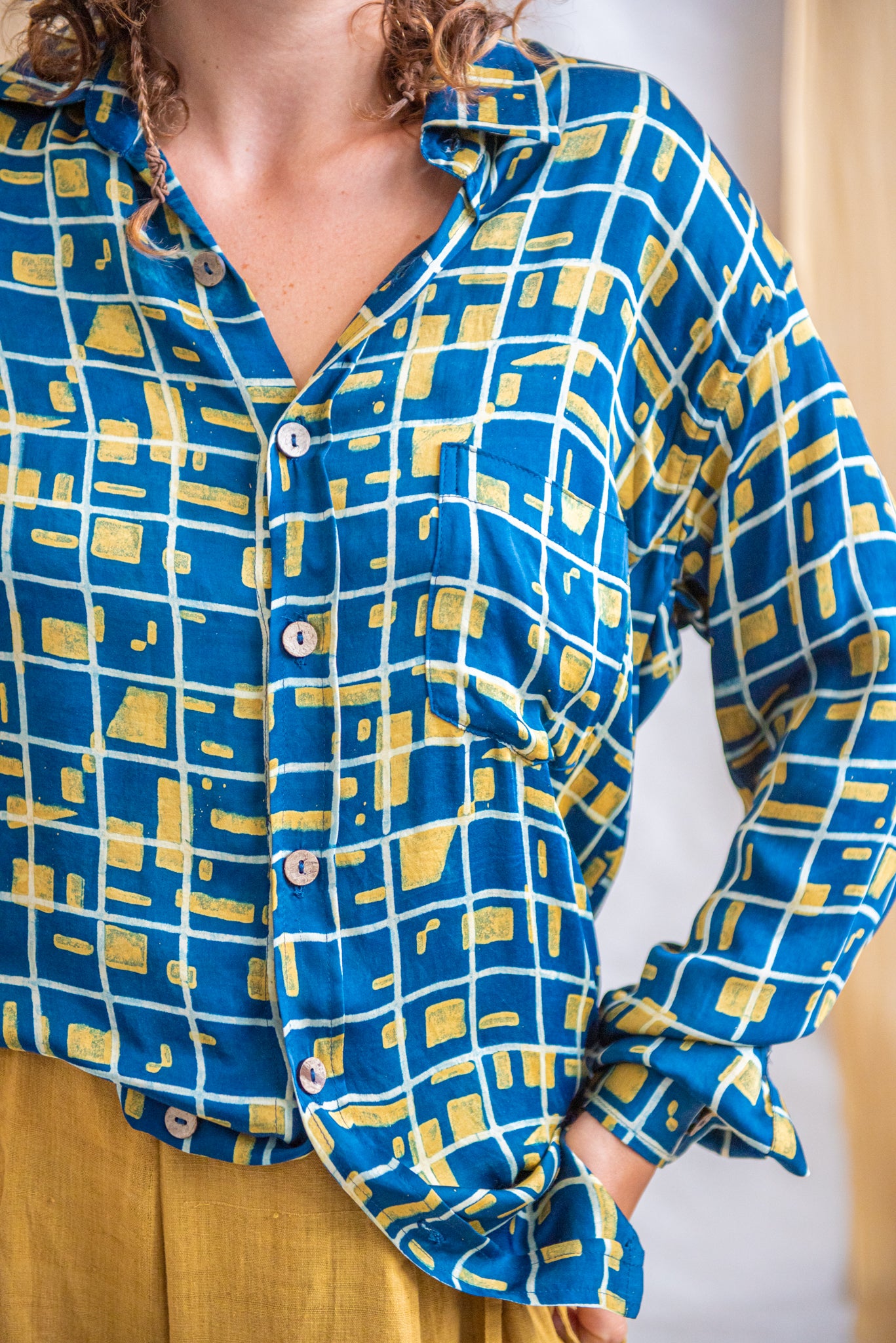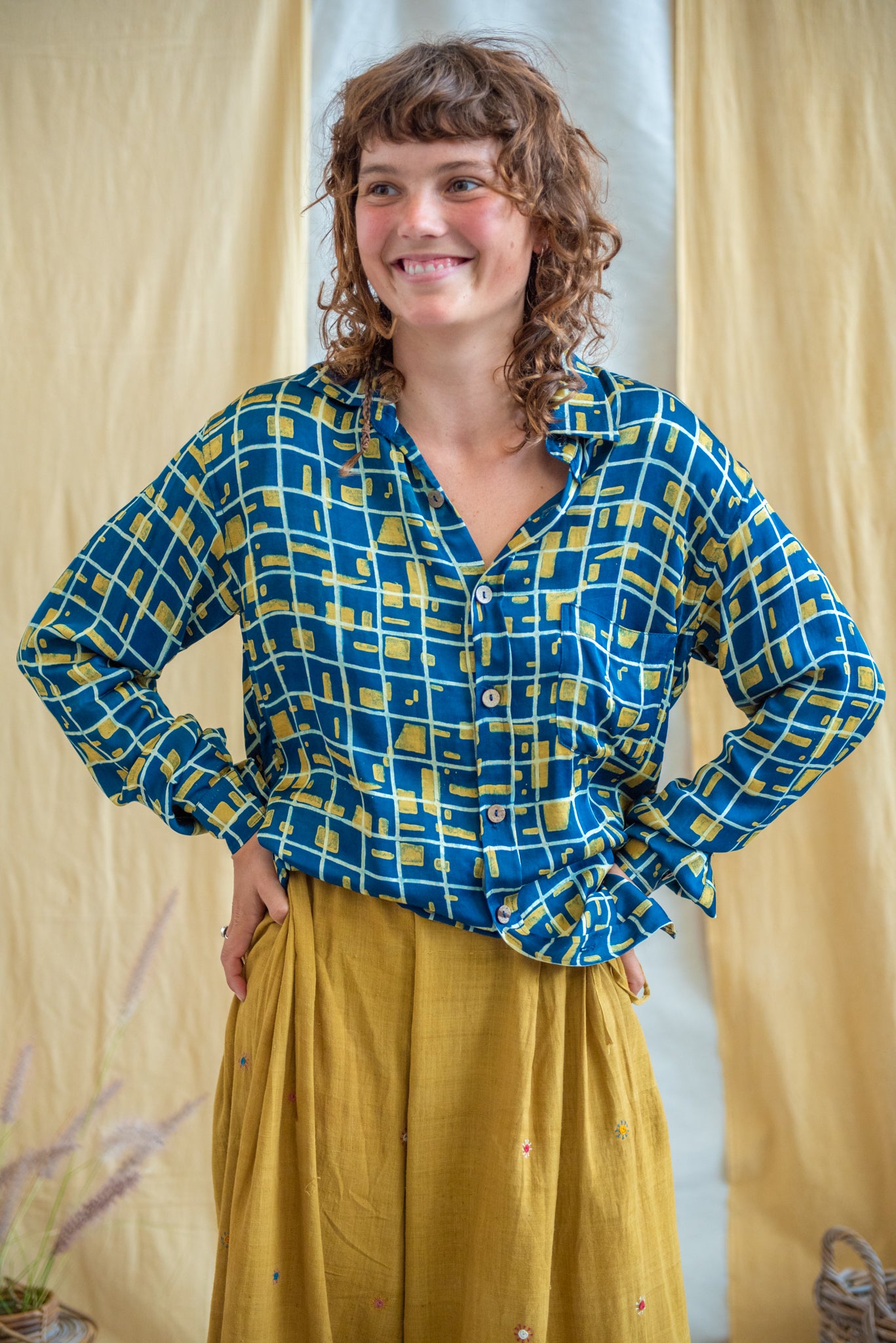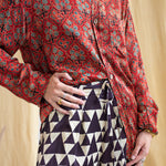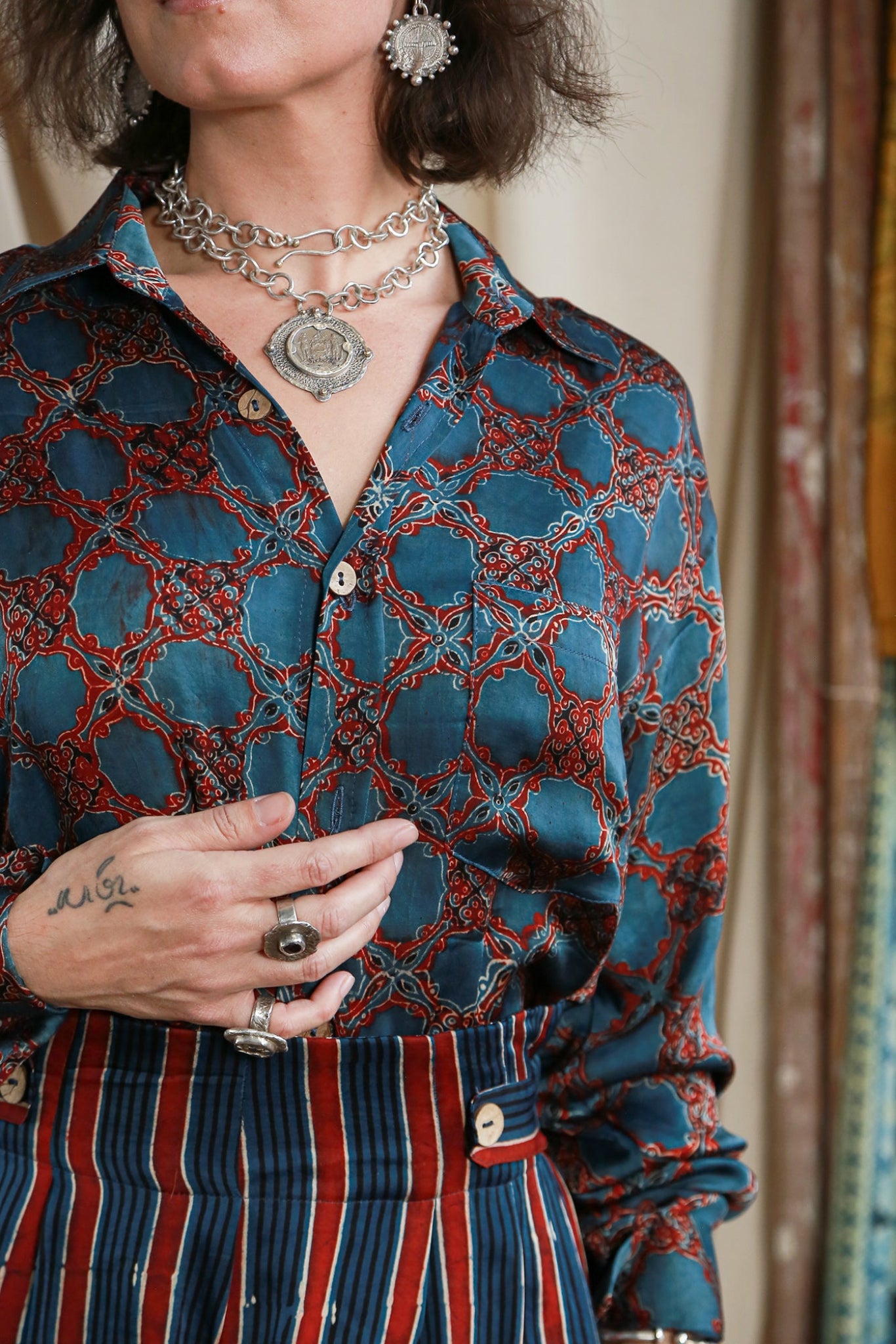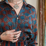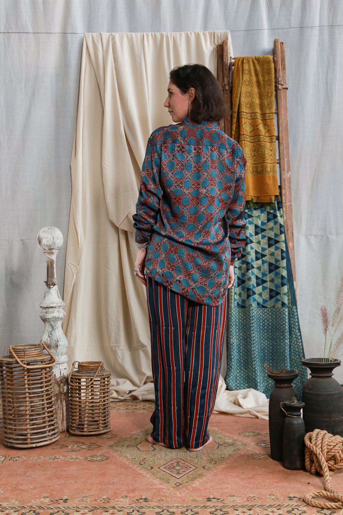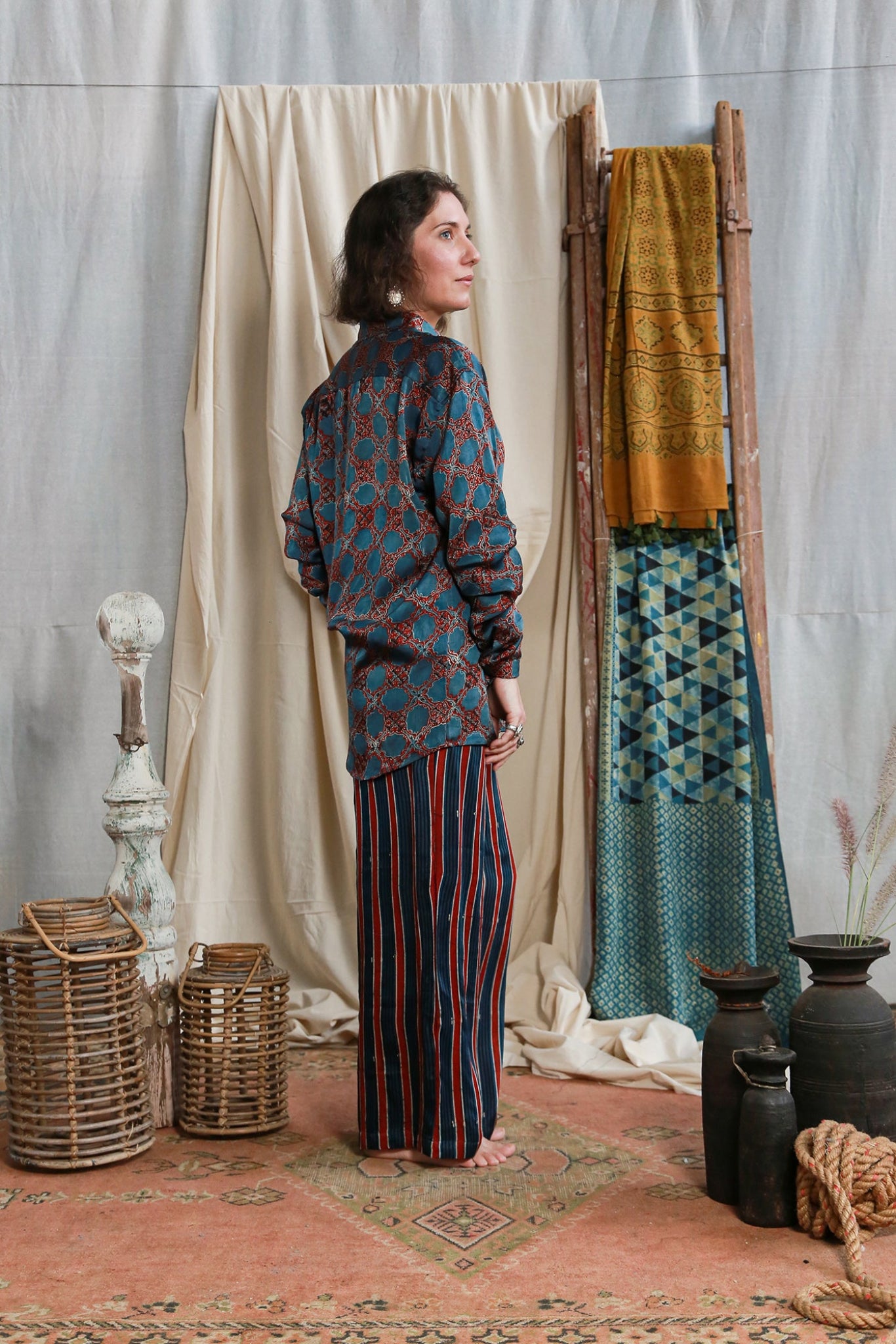 Elevate your wardrobe with our Modal Silk Unisex Shirt, a stunning piece from our exclusive Ajrakh Collection, crafted by master printer Suffyian Khatri. This versatile shirt offers both soft and luxury comfort that can be styled for any occasion.