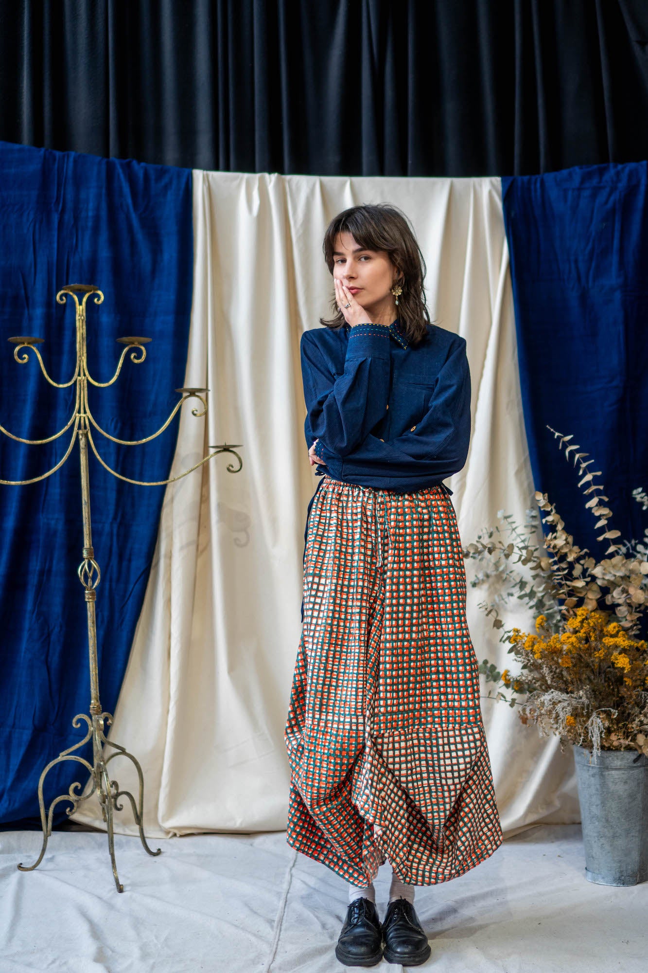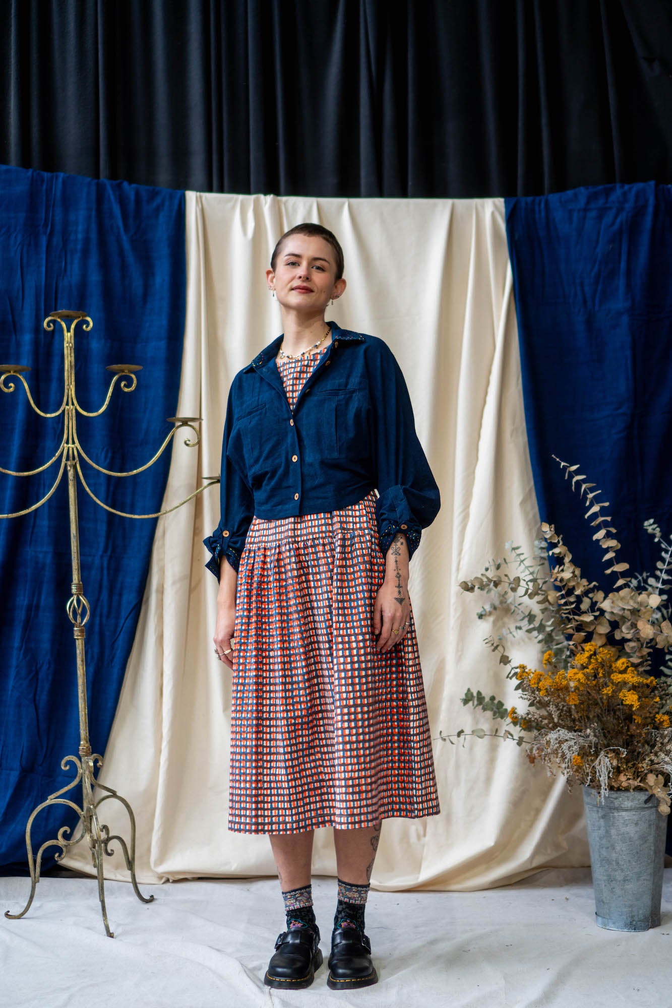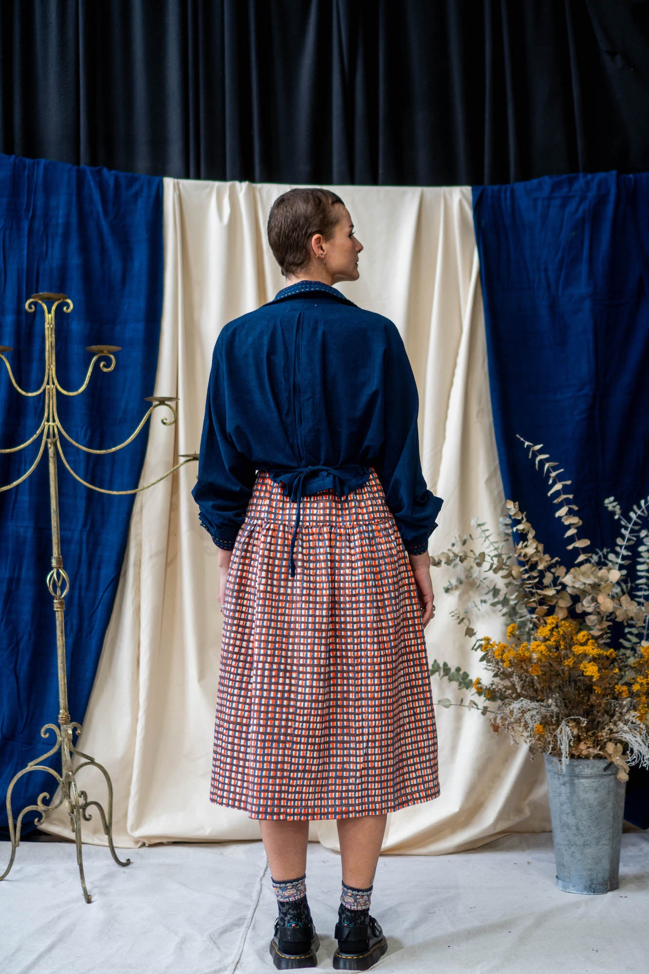 Based on the block for our classic Unisex Button Up Shirt, this new classic is a cropped version that falls perfectly on the waistline to pair with a high-waisted pair of pants or low rise to show off a bit of skin. The Cropped Shirt doubles as a jacket – made from midweight Khadi Cotton, so it is heavy enough to provide warmth as a layering piece on slightly cooler days, while still being stylish and versatile.