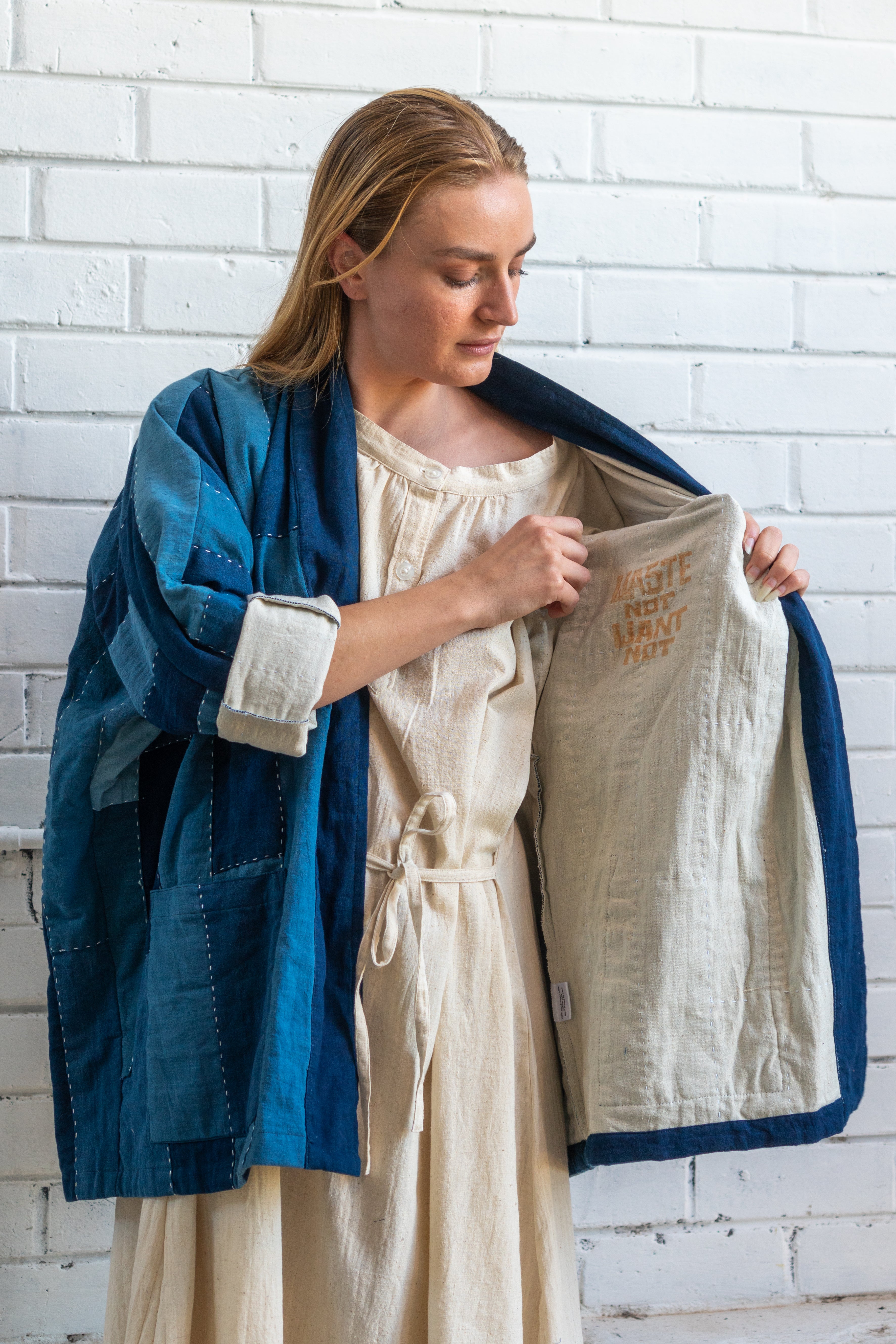 In collaboration with The Stitching Project, we are grateful to bring you a collection of Waste Not Want Not kimonos and jackets, along with our one-off quilts. Each are hand-stitched by the Ladies of The Stitching Project using offcuts of our previous and current collections, repurposing them and creating employment for the team during this increasingly difficult time that we find ourselves in globally.