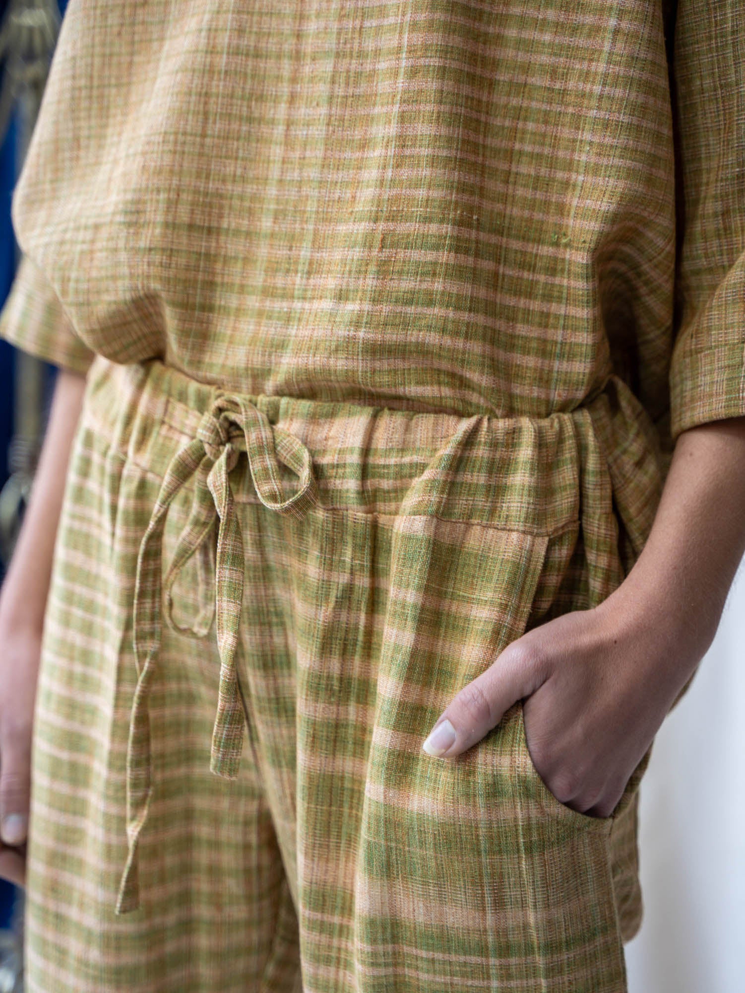 The drawstring pant is a brand-new block for us, and is one that is highly requested! With a unique mixed weave achieved by utilising various colours of threads in our handloom process, a natural, raw, and textured colourways are produced as a beautiful result.