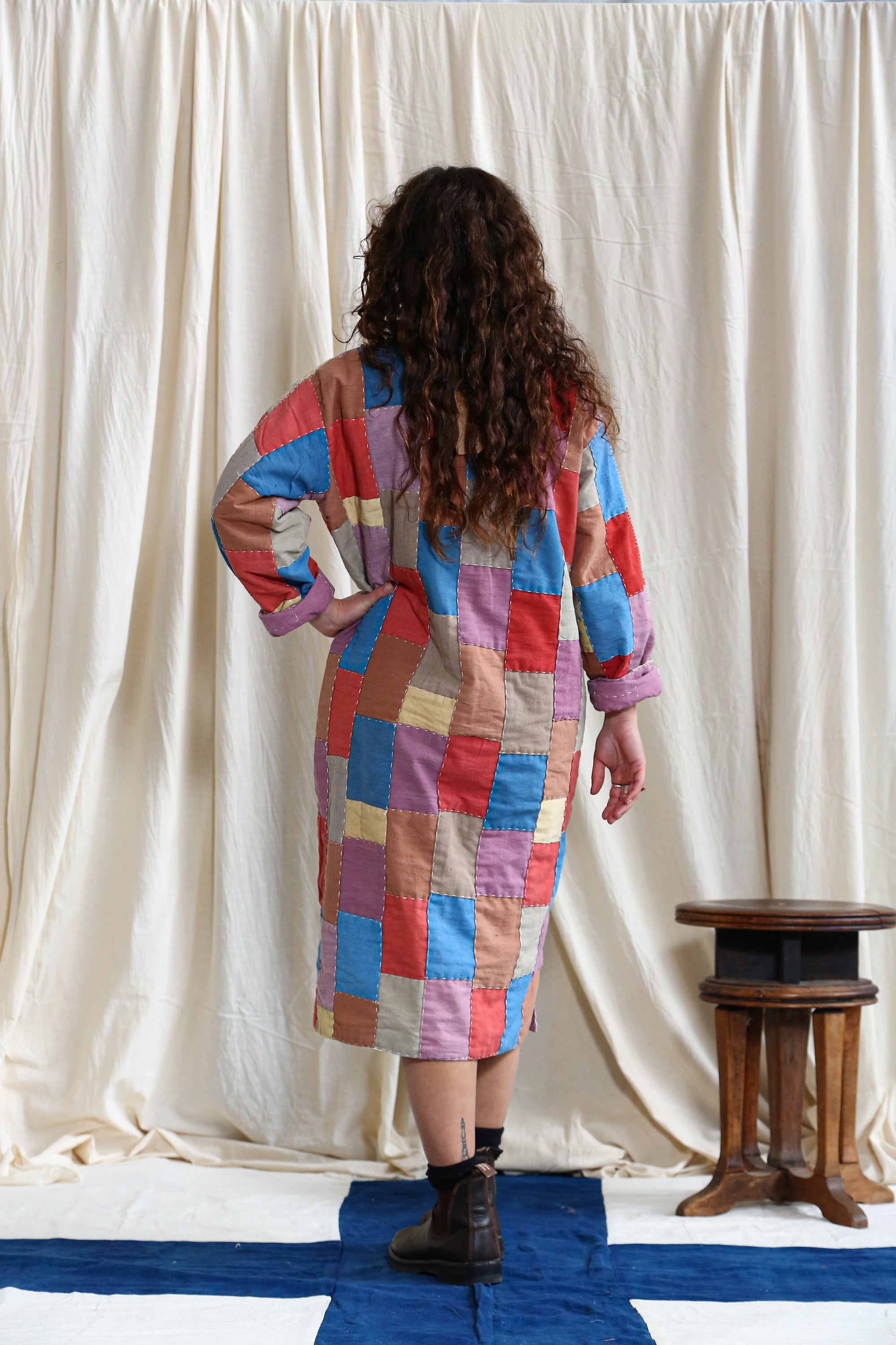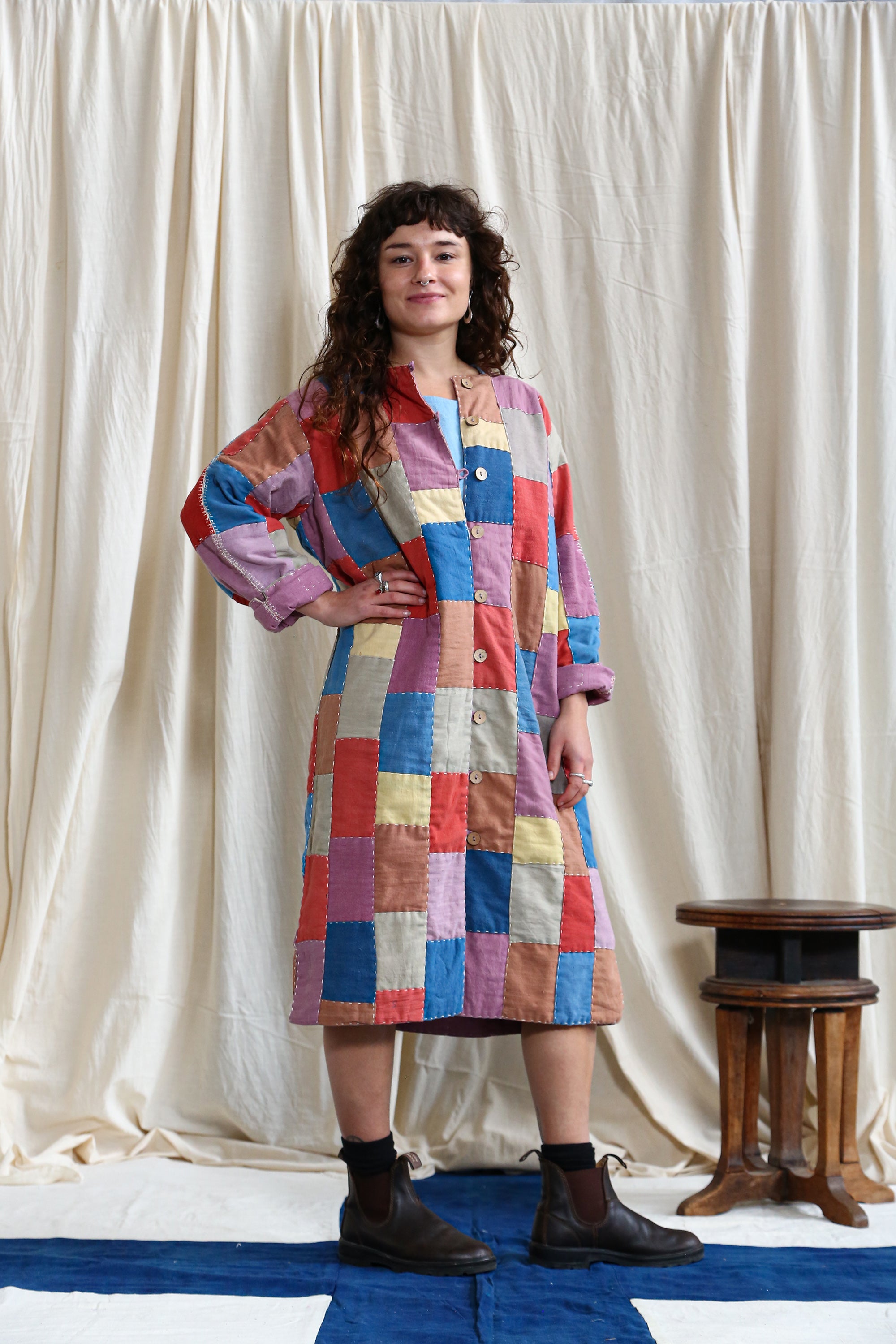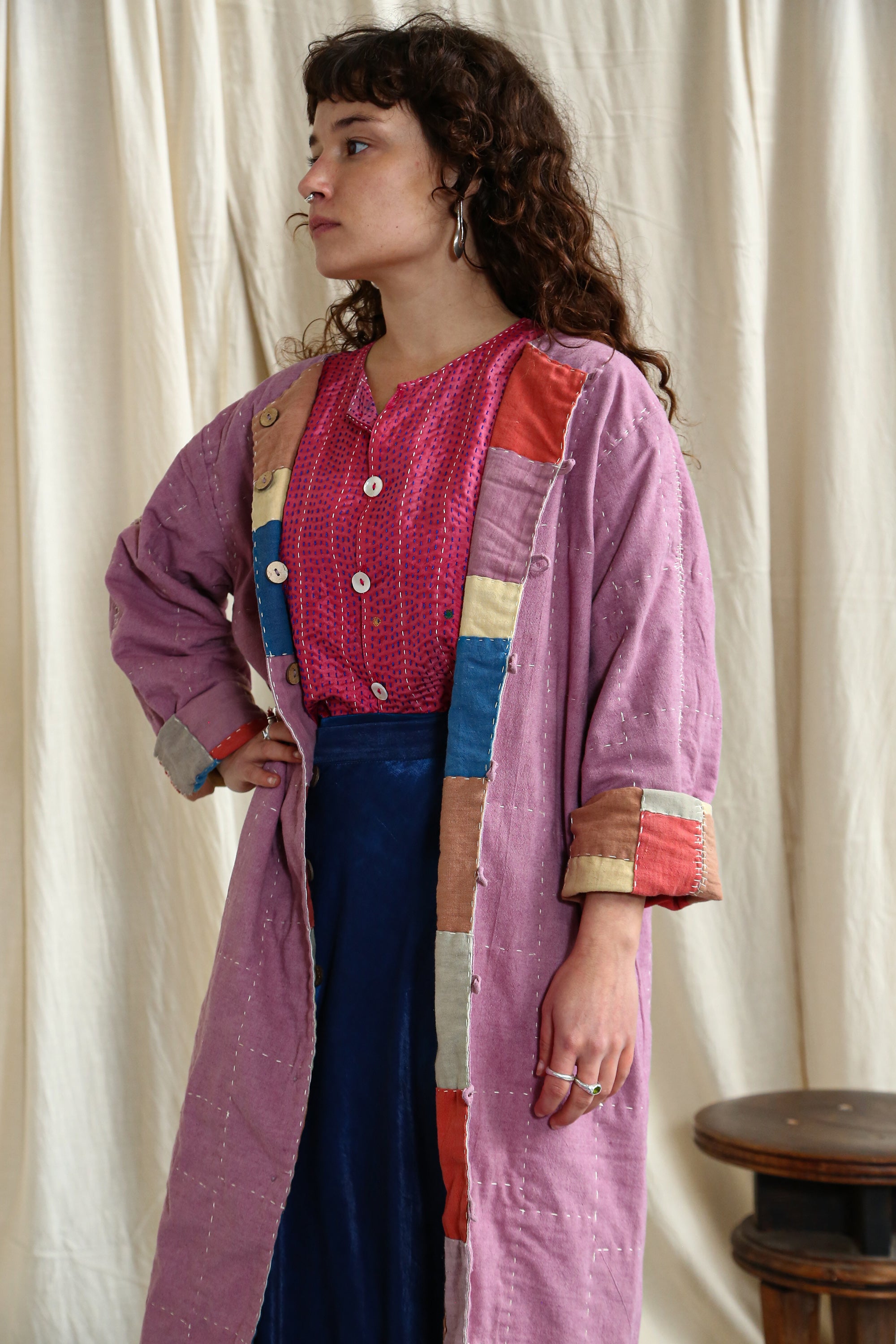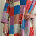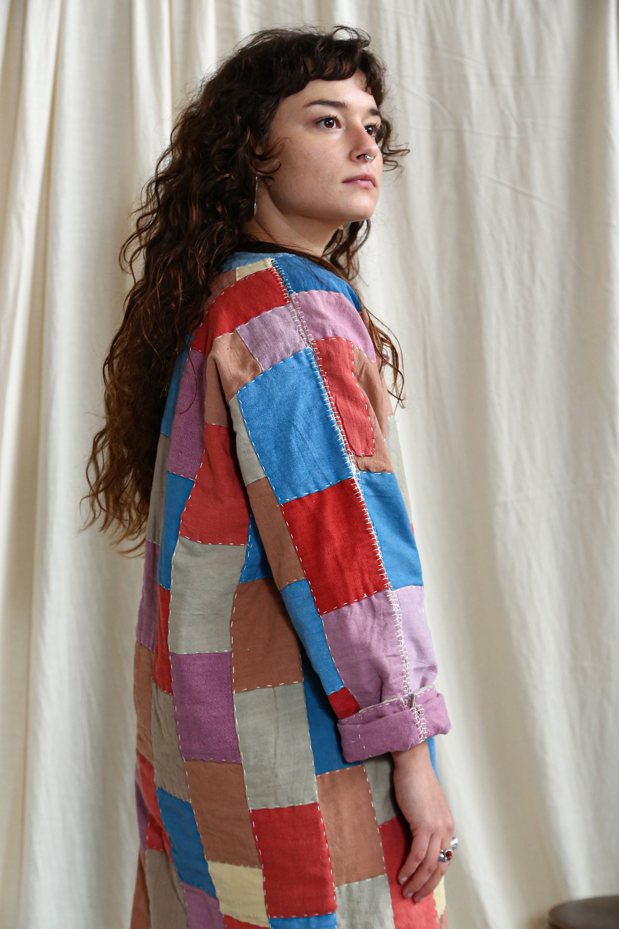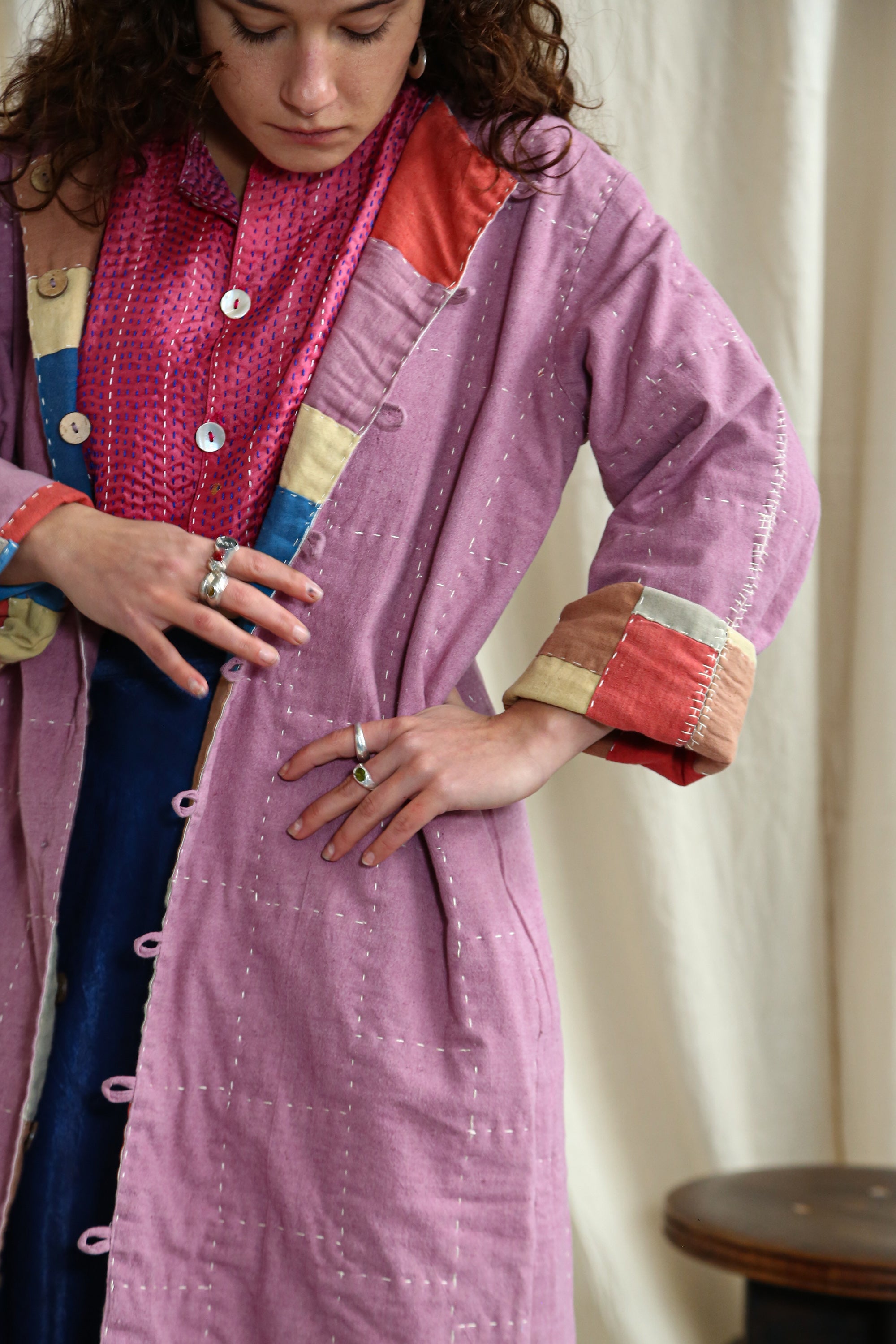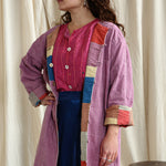 Step into the vibrant spirit of sustainable fashion with our Patchwork Reversible Coat, featuring a stunning hue derived from plant-based dye of lac. This coat is a celebration of meticulous craftsmanship and eco-consciousness, thoughtfully designed with offcut cotton patches in various colours of natural dyes including indigo, madder, marigold, catechu, and lac, creating a harmonious blend of hues and textures.