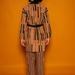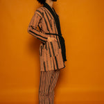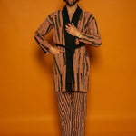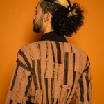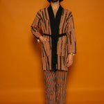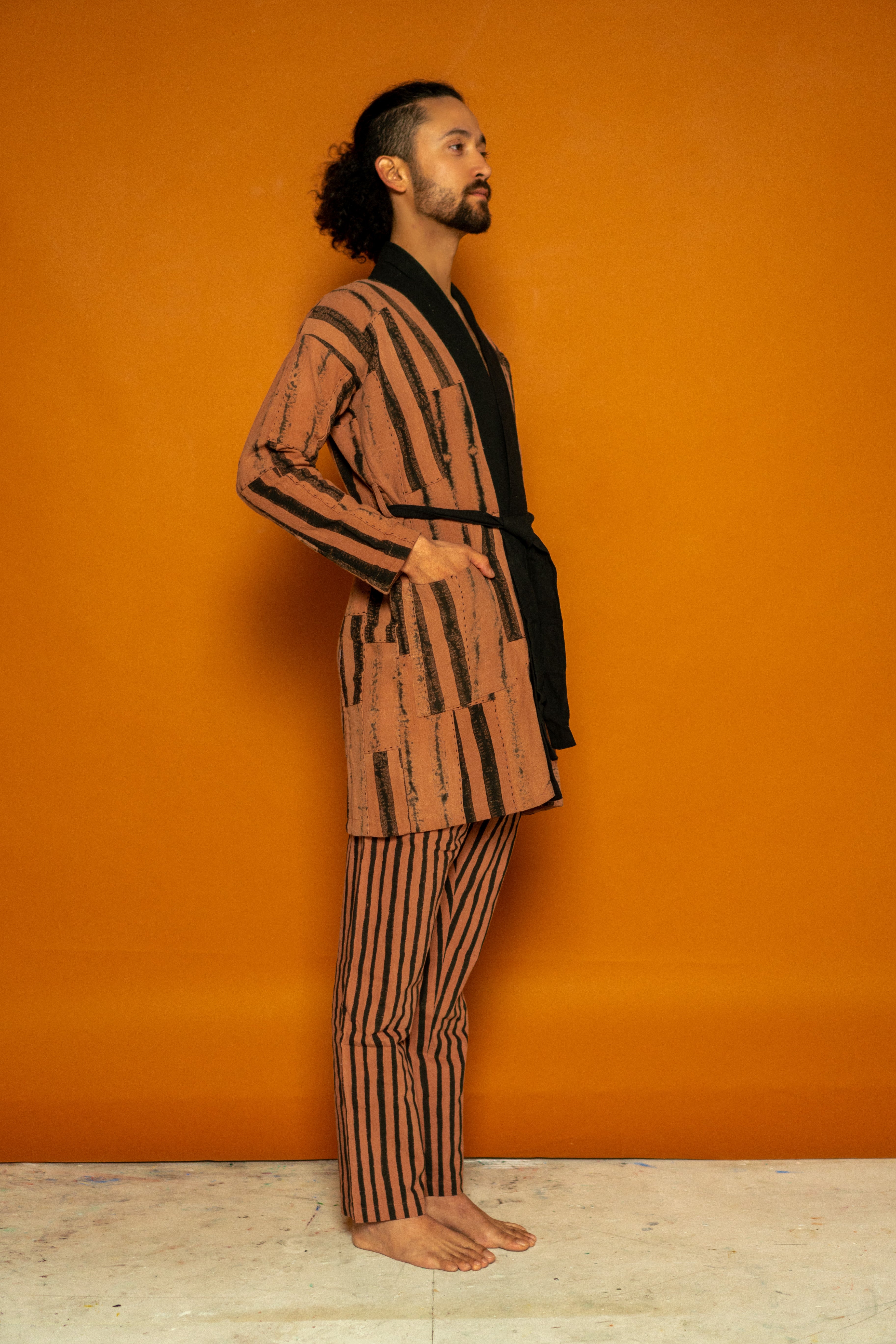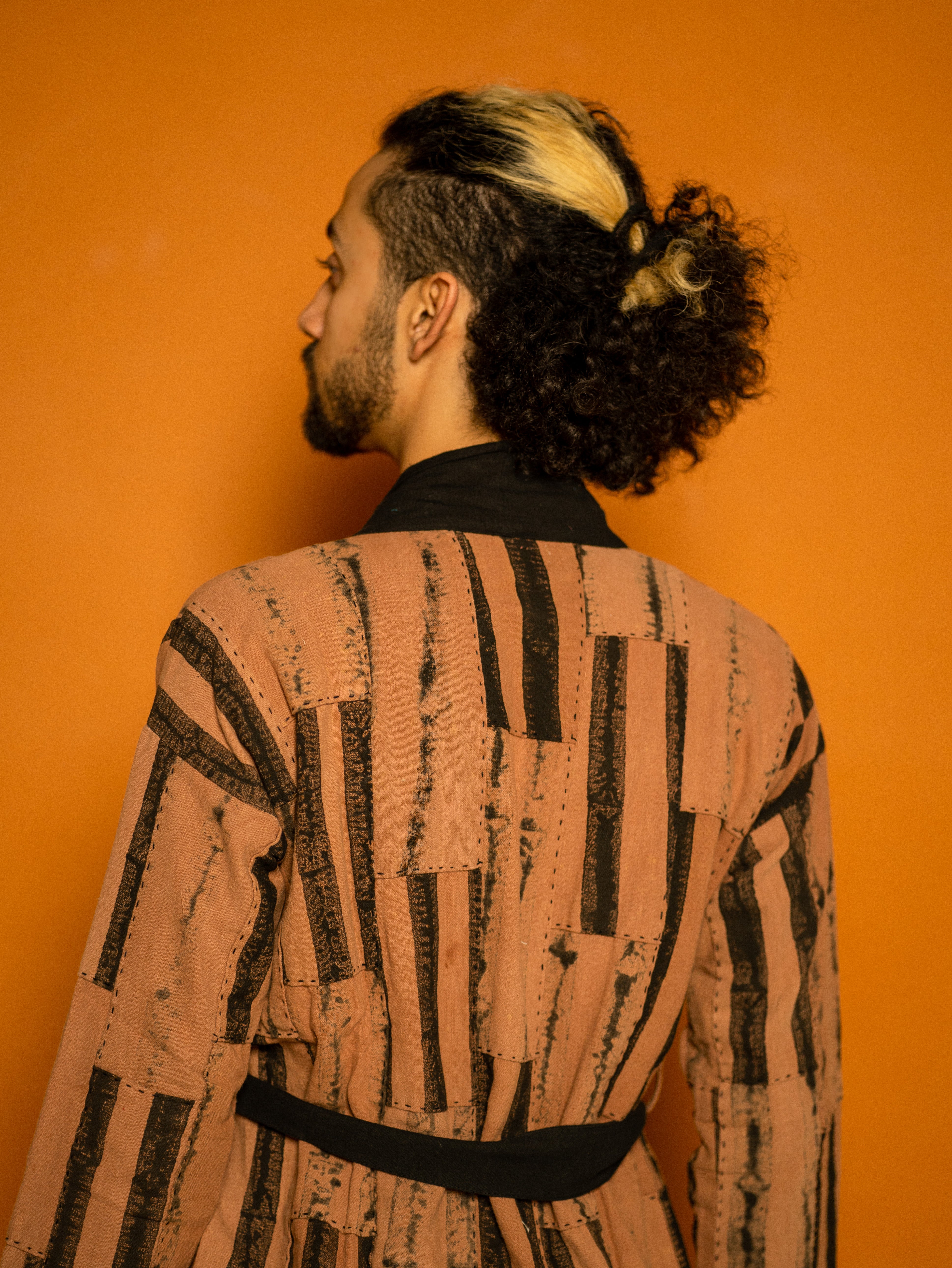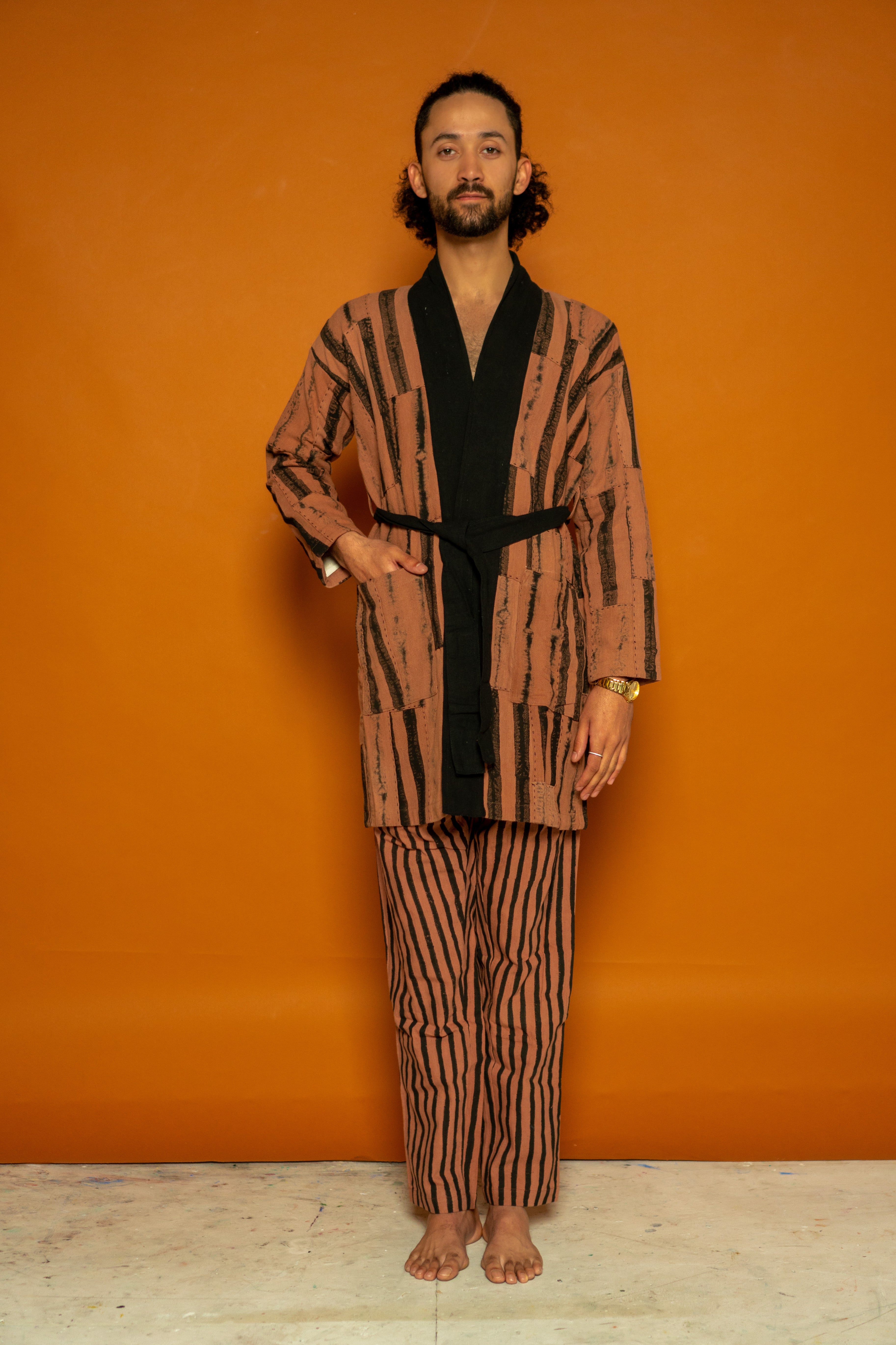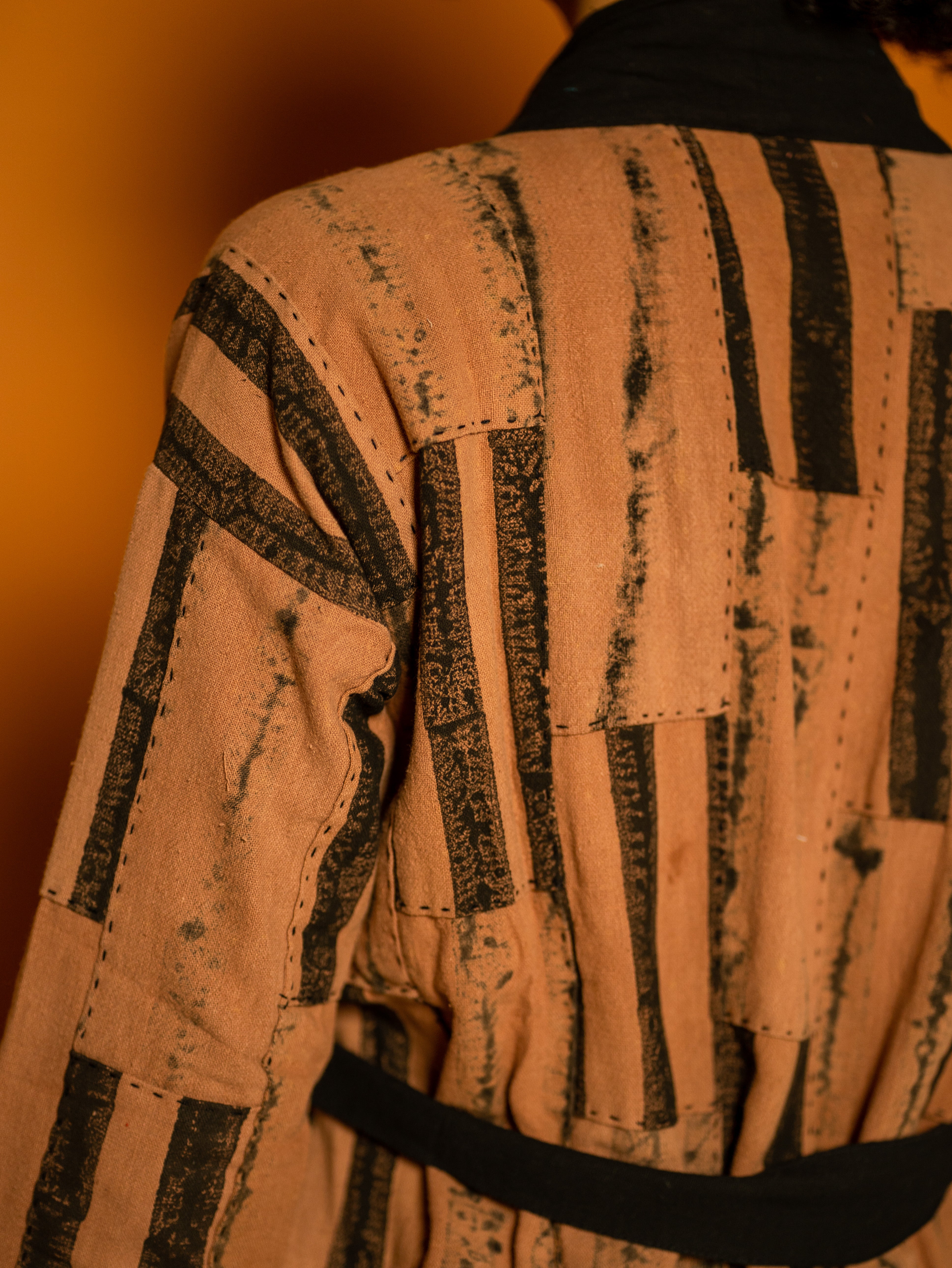 This Waste Not Want Not kimono is made from a mix of plain catchu and catchu and black block print offcut strips patchworked together expertly by the team at The Stitching Project. With two deep pocket details and lined with our lightweight khadi cotton, the sleeves roll beautifully to create a seamless contrast look. Stitched with white thread and complete with a lapel band, this piece makes for a staple in everyone’s ethical wardrobe.