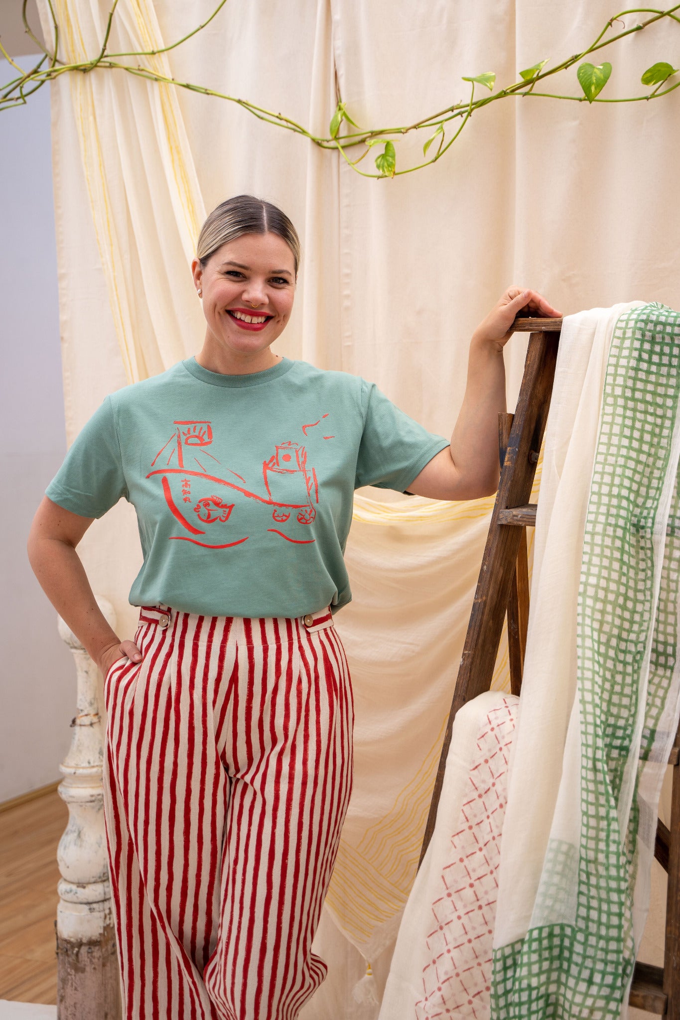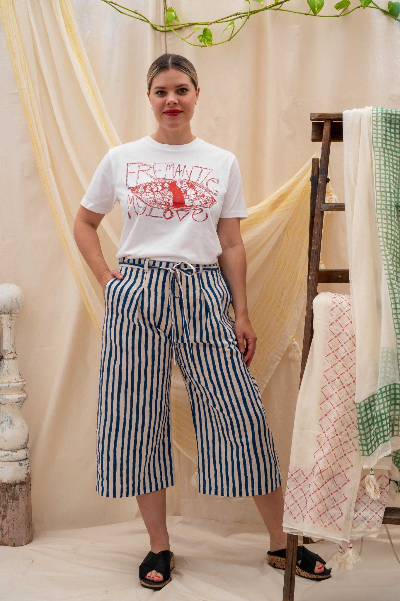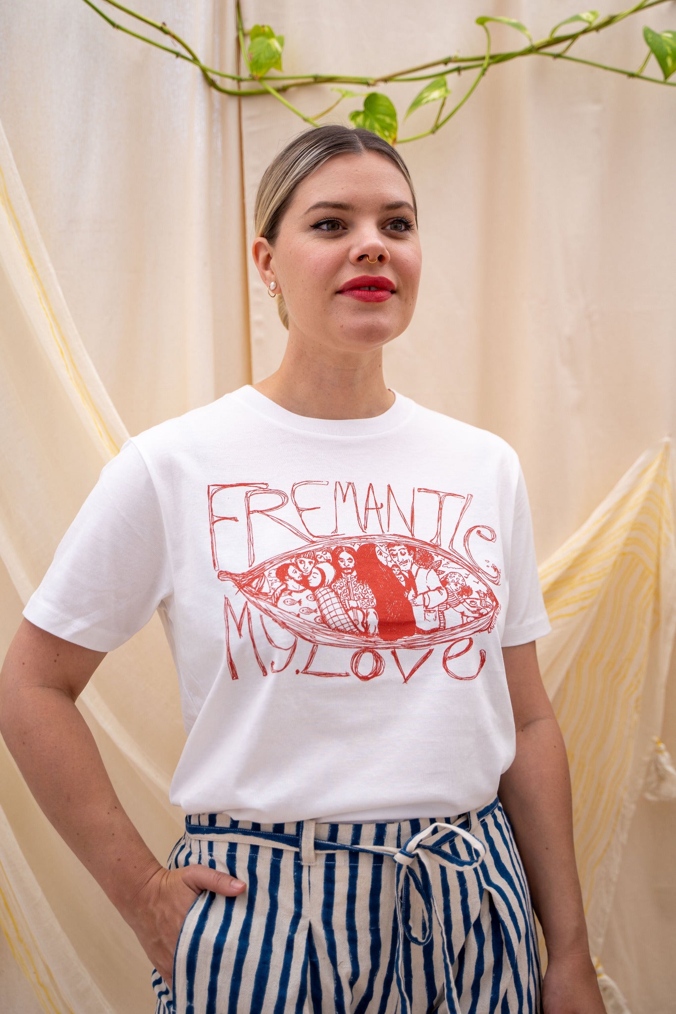 Each T-shirt is designed with the artist’s interpretation and personal connection to Fremantle city and is printed on EarthPositive® T-shirts by Ethical Tees.