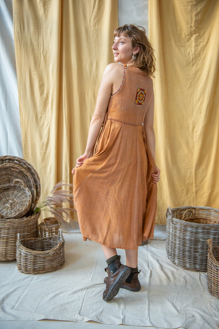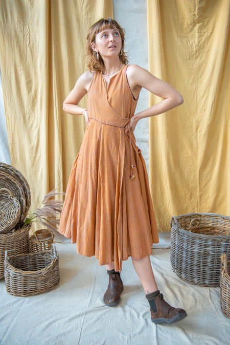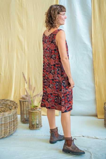 Ajrakh Cap Sleeve Cotton Midi Dress