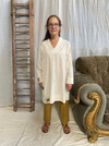 - made from handspun, handwoven Organic Cotton, this comfortable and loose fitting dress features long sleeves and deep right hand pocket, adorned with naturally-dyed embroidery thread on un-dyed natural cotton that wears well in all seasons.