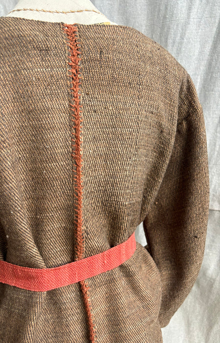 The Kimono Jacket by Kullvi Whims is finished with contrast hand-stitched details that blend traditional craftsmanship with modern style. Naturally-dyed Malkha cotton lines the edges, and a woven belt tie lets you wear it open or cinched. A kimono-inspired silhouette that offers warmth, versatility, and a story of sustainability—effortlessly stylish either way.