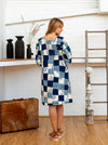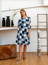Our classic half sleeve, one of your favourites is part of this capsule collection. With a fresh wide neckline, invisible side pockets, a classic knee-length and a half sleeve length, this dress is comfortable, versatile and will be a great transeasonal piece to wear throughout the year. As all pieces of patchwork are handstitched, the dress is fully lined for a clean finish and extra comfort. It will soften after a couple of wears and a wash as the handspun, hand-loomed khadi cotton will mould itself to your body.